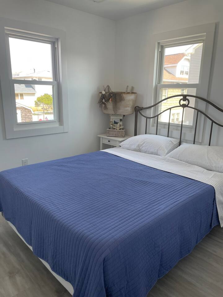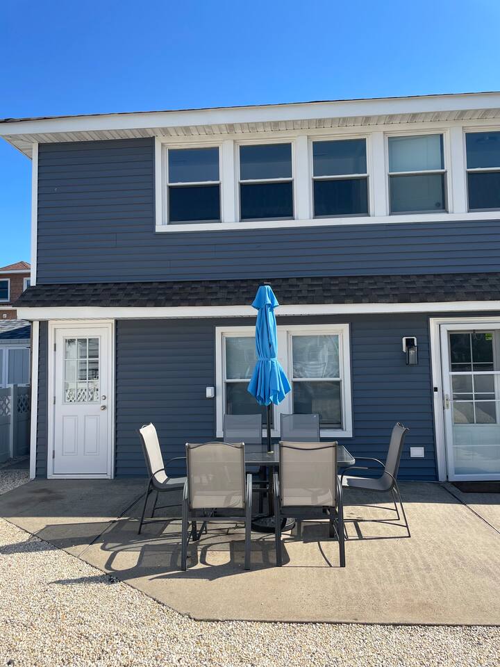 This two story home has a bedroom, kitchen and living space on the first floor, and 3 additional bedrooms on the second. Each floor has a full bathroom. The patio in front has a grill and dining table so you can can maximize the time you spend enjoying the shore weather.